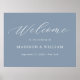 Välkomsttecken för det minimalistiska blåa skriptet Bröllop