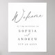 Modern manusminimalistisk bröllop-välkomstskylt i träkol svart och vitt, enkelt och elegant. Visa alla matchande delar i samlingen