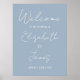 Denna dammiga blåa minimalistiska elegant-skript, bröllop-välkomstskylt, kan vara personlig med dina uppgifter i chic-typografi. Designad av Thisisnotme©