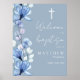 Denna elegant dammiga, blå, genomskinlig blommigt-baptism som döper välkomstskylt kan vara personlig med din information i chic-typografi. Designad av Thisisnotme©