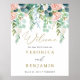 Välkomna dina gäster i bröllop med vår trädgårdsskylt, med vattenfärgsgrey lush eucalyptus. Anpassa med dina bröllop-detaljer i enkel och modern layout och elegant handskrivet stil-teckensnitt.