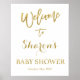 Välkomsttecken för guld och vit babydusch poster