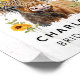Välkomstskylt för babyskor, högland, med en vacker, rustisk höglandskost, försedd med solblommor på en vit träbakgrund.