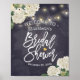 Möhippans välkomstskylt Poster mallar - Elegant White Hydrangea Flowers och String Ljus på Vintage Navy Blue Blommigt Linen Background. En Perfekt för din stora dag. Alla textstorlekar i stil, färg, kan ändras för att passa dina behov!