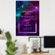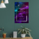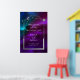 Den kosmetiska Lilan Teal Sol Måne Stars Välkomstskylt Celestial Cosmic Galaxy Space Bröllop Välkomstskylt Poster silver sol, måne och stjärnor med silver på färglös mystisk ram, teal och blå kosmisk bakgrund. Inuti ram finns anpassningsbarnas text i ett kalligrafiskript för elegant. Designad för dig ©2024 Evco Studio www.zazzle.com/store/evcostudio
