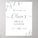Modern chic dammig blå vattenfärg botaniskt bladgrönt, enkelt och elegant, underbar möhippa välkomsttecken för modernt bröllop, rustiskt bröllop och botaniskt trädgårdsbröllop i vår och sommar. Visa alla matchande delar i samlingen