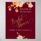 Chic och kalligrafiskript i klassy guld poster välkomsttecken för möhippa med persikor och guld / vita bokstäver på en mörk röd burgundisk bakgrund Observera att vinet med röd färg i mörk är redigerbart. Du kan ändra den, och du kan även använda typsnitt och färg när du har valt alternativet "anpassa ytterligare".