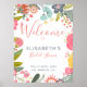 Välkomstskylt för vilda blommor i vår poster mall med en söt handdragen blommigt-andedräkt i skuggor av korallröd, havsblå, järn- och sage-grönt, ljus gult och möhippa med blomning och löv och med en rosa modern chic-typografi av contemporary. +++++++++ Tecknet är perfekt för land rustik vår eller sommar | BLOMMIGT | elegant för möhippa utomhus eller bakgård.