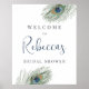 Ett välkomsttecken för boho-chicen som är designat för att matcha vår Watercolor Peacock Feather inbjudningskort för möhippa, med ett par påfågelfjädrar som sätter din anpassningsbar i elegant indigo.
