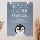 Välkomna gäster till din babydusch med den här vackra poster som innehåller en söt penguin, snöbakgrund och texten "baby det är kall utanför" Lägg till hedersgästens namn, duschdatum och anpassningsbarnas välkomsttext med hjälp av fält.