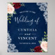 Välkomsttecken för Red Blommigt Navy Blue Bröllop Poster