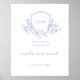 Välkomsttecken för Romantic Blue Blommigt Monogram Poster