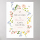 Ett vackert välkomsttecken för babyduschen med mjuka pastellfärgblommor och ömtåliga fjärilar som omger en elegant med skiftande textlayout. Perfekt för att skapa en varm och charmerande atmosfär för speciella firande.