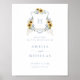 Välkomsttecken för solblommor Dusty Blue Hydrangea Vapensköld Monogram. Välkomstskylt för Dusty Blue Bröllop. White Hydrangea Flowers Greenery Watercolor Bröllop Vapensköld Poster