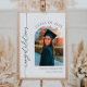 Välkomna gäster till studentfesten med detta välkomsttecken. Lägg till hedersgästen namn, skolår och klassår med hjälp av fält. Lägg också till ett foto av student.