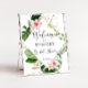 Välkomsttecken för tropisk möhippa med vattenfärg. Monstera löv, guld Välkomstskylt. Matchande objekt är tillgängliga.