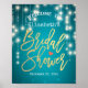 Möhippans välkomstskylt Poster mallar - Eleganten Faux guldfyllningsskript och Vintage String Ljus med Turcos Blue Glitter Gnistra Background. En Perfekt för din stora dag! Alla textstorlekar i Stil, Färg kan anpassas efter dina behov.