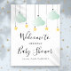 Den här välkomstskylten är perfekt för en speciell babydusch. Den har söta mint-gröntens moln och gyllene stjärnor på strängar. Designad av Thisisnotme©