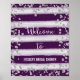 Poster utskrift för välkomsttecken med faux silver glitter och plum lila rand vattenfärgsbakgrund.