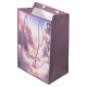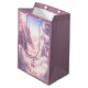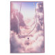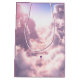 En solitär hett-luft-ballong flyter genom blekens rosa-kanyon mellan handledsmoln. Sol, lågt i pastel himlar, glöder bakom kant i bakgafflarna och sänder ljusstrålar mot tittaren.