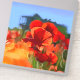 Vackra ljuseffekter på detta färgrika vallmofält. I bakgrunden skuggan av ett hus.