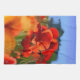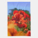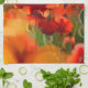 Vackra ljuseffekter på detta färgrika vallmofält . I bakgrunden skuggan av ett hus.