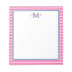 Det här söta monogrammade anteckningsblocket har fördärvlig rosa och vitt rand med ett klassiskt marinblått monogram. Anpassa monogrammet med ditt val av namn och början.