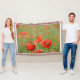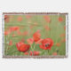 Kastfilt med vibrerande röda vallmoblommor i en grön fältfullt av vallmor. Det har en stark sinnesrörelse av hapinessen, våren och sommaren. Underbar dekoration på din soffa!
