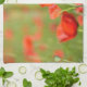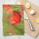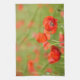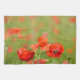 Kökshandduk med vibrerande röda vallmoblommor i en grön fältfullt av vallmor. Det har en stark sinnesrörelse av hapinessen, våren och sommaren.
