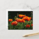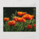 Vykort med foto av solbelysta orange vallmo blommor mot mörk bakgrund