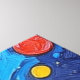 Denna konstverk av Otis Porritt presenterar en slående porträtt av en schimpans inklämd i en rymd hjälm. Återgiven med djärva, impasto-liknande texturer, primatens ansikte exploderar i en kalejdoskop av levande färger, från djupa blues och lila till eldig orange och röda. Den reflekterande visiret inramar dess intensiva blick, medan den omgivande kosmos exploderar med virvlande nebulosor och avlägsna planeter i ett dynamiskt samspel mellan färg och ljus. Den rika, skiktade appliceringen av färg skapar en kraftfull, nästan taktil visuell upplevelse, fångar en känsla av förundran och utforskning.