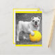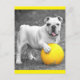 Oj... Vem kan motstå en Bulldog-hundvalps ansikte? Detta roliga vykort visar en svart-vit bild av en engelsk Bulldog-valp som leker med en ljusgul boll. Hon är redo att hjälpa dig att skicka leenden till familj och vänner.