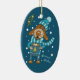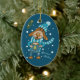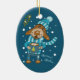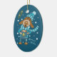 En söt blå keramisk prydnadsföremål för Julgran med en hund som dricker en kopp av hett kakao med marshmallow. © ArianeC Illustrations-Alla höger reserverade