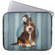 Den ursnygga bassethundvalpen med top hat som leker kort, tärning och blåttvintage, görar randig i bakgrunden som målas av konstnären Maryline Cazenave.