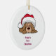 Commerate din valp första jul med denna ovala minnessak som presenterar en bedårande tecknadvalp som ha på sig en santa hatt