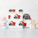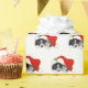 Denna julgåva som slår in papper, visas med en vitbakgrund med en gullig kelig valp och kattunge snuggled tillsammans i en stor röd Santa hatt. Skrivev ut alla över.