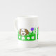 Du kan beundra teckning om en fluffig marionett som leker i grönt med blommor, jag kallar teckning "Valp N Play". Den här benet china mugg gör perfekten till vilken tillfälle som helst.