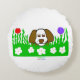Du kan beundra teckning om en fluffig marionett som leker i grönt med blommor, jag kallar teckning "Valp N Play". Den här rundan dekorativ kudde ger perfekten till vilken tillfälle som helst.