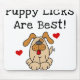 En gullig brun hund med hans lite tunga som ut hänger, röda hjärtor och svart text, som läser "valpaningar, är bäst!".