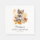 Sötlandsteknodyna för babydusch med en vattenfärgad illustration av en varg valp omgiven av höst löv i nyanser av orange, rött och gult. Anpassa vargens babyduschservar från baby med namn från mor till till barn och babyduschdatum. Designad för att samordna med vår samling av matlagningsdjur för matning av spädbarn.