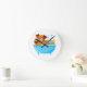 Valpen som tar en bubbelbad badar in rund klocka
