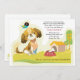Denna gulliga inbjudan är perfekt för ett barns födelsedagfirande. Den presenterar en valp, hans hundkoja, ett ben i en maträtt och en kvittra fågel perched på valp huvud. Kortet är lätt att skräddarsy med ditt uttrycka, stilsort, stilsortsfärg och primat av sex pappra typer.