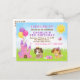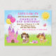 Bedårande bortskämda valpdrottningar som sitter bredvid ett rosa slott med rosa, gula och lila festballonger. Det finns godsaker och leksaker i närheten, såsom vattenskål, hundben och tennisbollar.