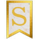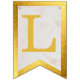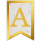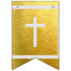 En banderoll av flaggor som är lämplig för baptismer, första kommunions- eller religiösa-bekräftelser. Golden cap på en vit marmorbakgrund med faux guld foil gräns, med 2 gulvita kor på fingret guld mellan ord. Budskapet är "Välsigna dig" följt av ett 6 brev namn som säger att du bör byta brev mot brev (standard är Olivia).