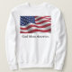 Manar långärmad bomull med den amerikanska flagga på framsidan. Kompilera och värm bomull. Välsigna dig Amerika.