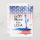 Det inspirerande vykortet skildrar Frihetsgudinnan med den amerikanska Flagga stars och stripes som bakgrund och har välsignelsen "Välsigna dig USA."~