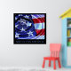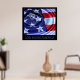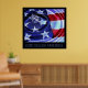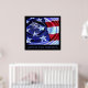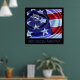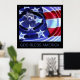 En patriotisk abstrakt med en vattendroppe över en flagga med koncentriska cirklar som utstrålar. Må Välsigna dig Amerika.