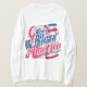 T-shirt-designen "Välsigna dig America" visar vintagen i ett slående, färdigt, avslutat teckensnitt. Texten är skriven med dekorativt inslag som stars och stripes, och innehåller ofta en liten amerikansk flagga eller örnmotiv, som alla ställs mot en bakgrund som framkallar en känsla av patriotiskt pride och tidlös respekt.