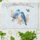 Pastellblått blommigt, dammhandduk. Blåfåglar, rosa körsbär blommar gren och blå fjäril. Välsigna dig vårt hem. En del av en matchande uppsättning av hushålls-/köksdäck. Tack för tittar.