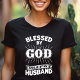 Fira de dubbla välsignelserna i ditt liv med denna trosfyllda t-shirt för hustrur. "Välsignad av Gud, förlorad av min make" är en lekfull förklaring av din kärlek till både din Skapare och din partner. Perfekt för kyrkan, dejting eller vardagsbruk, denna skjorta visar upp din tro och uppskattning för din makes kärlek. Tillverkad av mjuk, bekväm tyg, är det en stilren påminnelse om välsignelserna i ditt liv.